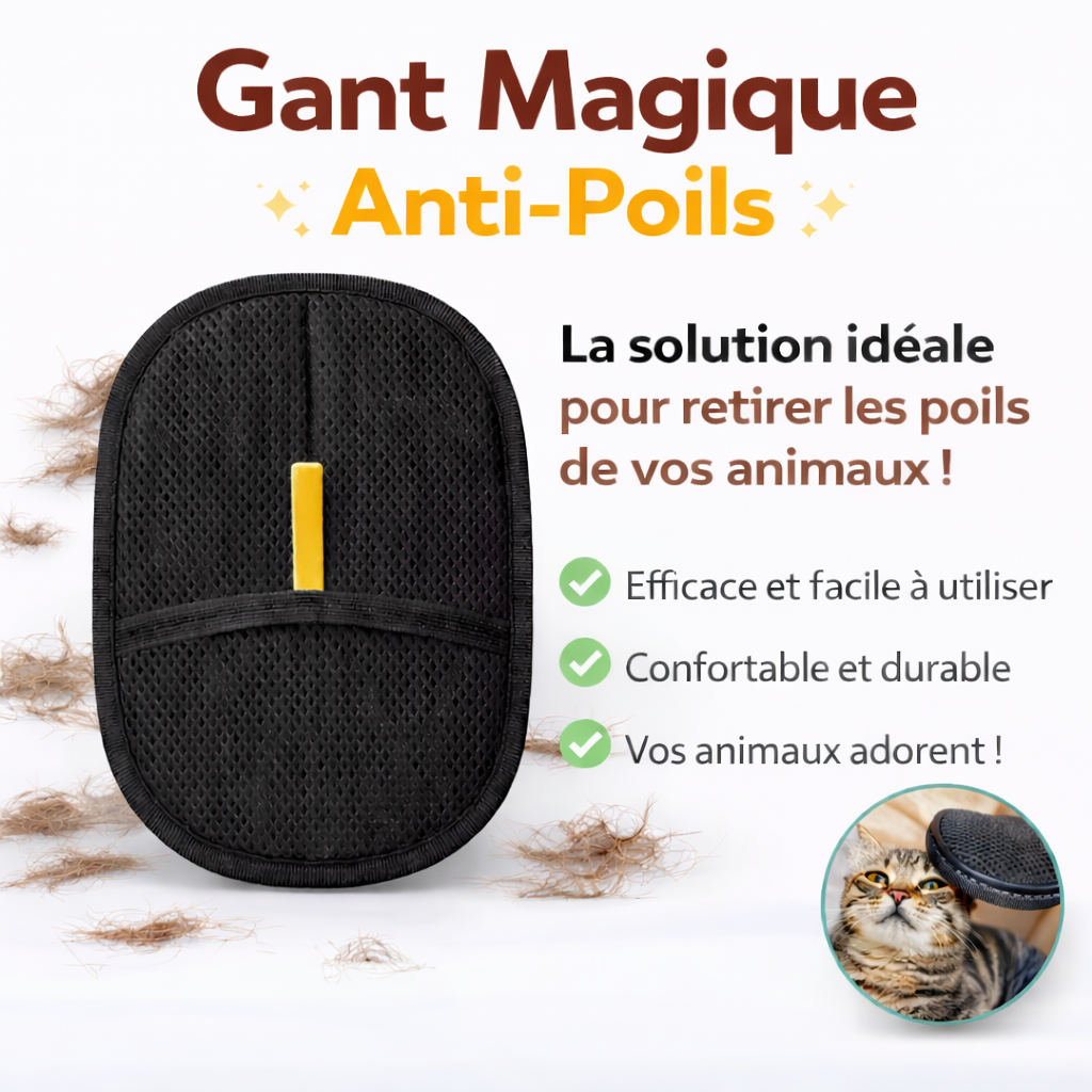 Notre gant de toilettage révolutionnaire retire facilement les poils morts, démêle le pelage et masse votre animal en douceur. Avec sa technologie électrostatique, il procure un véritable moment de détente à votre chien ou chat, tout en réduisant la perte de poils.