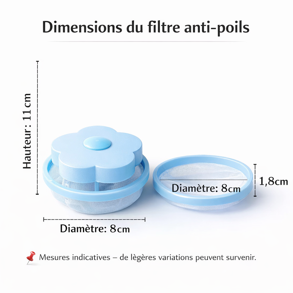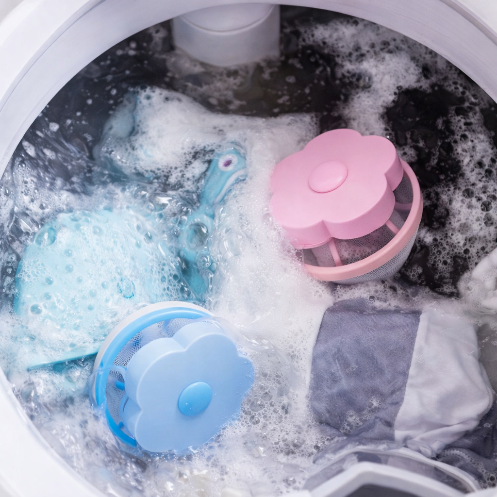 Notre balle filtrante Fleur de Prunier capture efficacement les poils et les saletés directement dans le tambour, pour un linge beaucoup plus propre et une machine mieux protégée.
